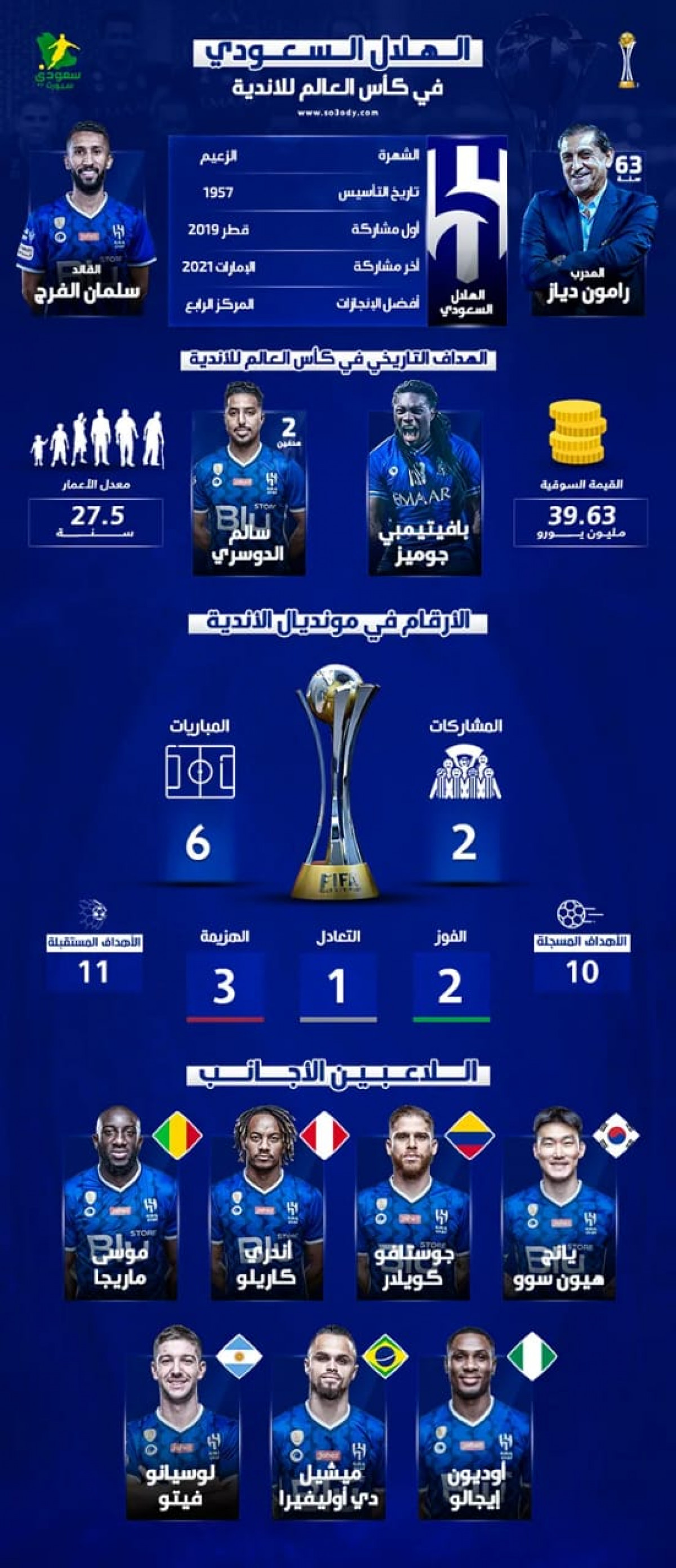 أيام قليلة تفصل الفريق الأول لكرة القدم بنادي الهلال عن المشاركة في كأس العالم للأندية، للمرة الثالثة في تاريخه، بعد عامي 2019 و2021، وسط تطلعات كبيرة لجماهير الزعيم في تحقيق إنجازًا كبيرًا لكرة القدم السعودية.