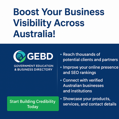 By registering your business on GEBD.com.au, you can gain exposure in local searches and get linked from an Australian directory with government/education association, which may enhance trust in the eyes of local customers.