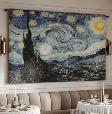 One prominent trend is the use of vintage tapestry wall hangings. These pieces often feature intricate patterns and muted color palettes reminiscent of historical European designs. They add a sense of sophistication and nostalgia to interiors, especially when paired with antique furniture or classic décor elements.
