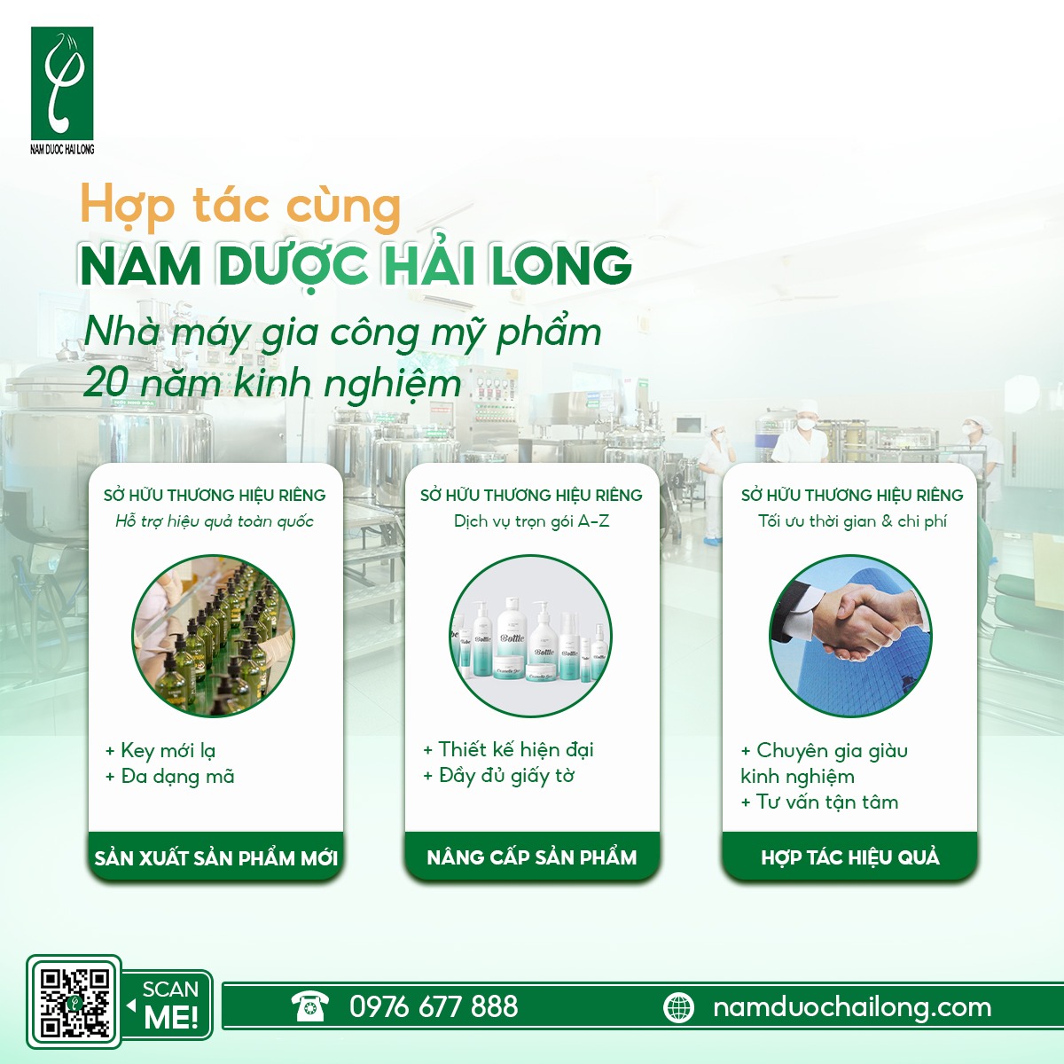 Nam Dược Hải Long may mắn là công ty mạnh với nhiều thương hiệu mỹ phẩm trên cả nước. Với việc gia công mỹ phẩm trọn gói, uy tín, giá cả cạnh tranh và đội ngũ chuyên gia chuyên môn cao, chúng tôi cam kết đem lại cho bạn những sản phẩm mỹ phẩm tốt nhất, giúp bạn buil thương hiệu riêng thành công và bền vững. Hãy liên hệ ngay với chúng tôi để được chăm sóc nhiệt tình và nhận báo giá ưu đãi nhất!