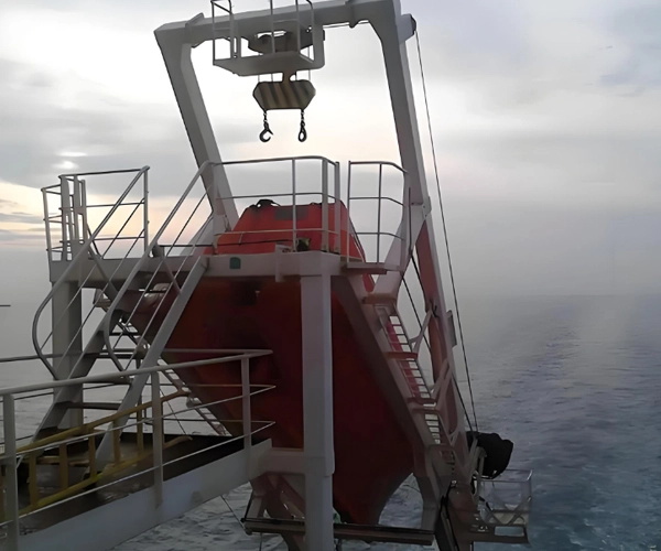 The free fall lifeboat launching device is a specialized equipment for launching and retrieving free fall lifeboats. This device has completely changed the traditional way of launching lifeboats from both sides of the ship. Instead, the lifeboat deviates from the mother ship's course and falls freely into the water, thereby improving the evacuation capability of the distressed vessel. This device is currently the safest and most reliable rescue and escape system internationally, and its superior performance has been increasingly recognized by ship owners and crew members.