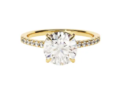 Yellow gold round engagement rings often look more expensive than they are.