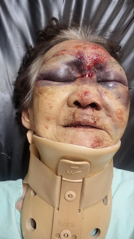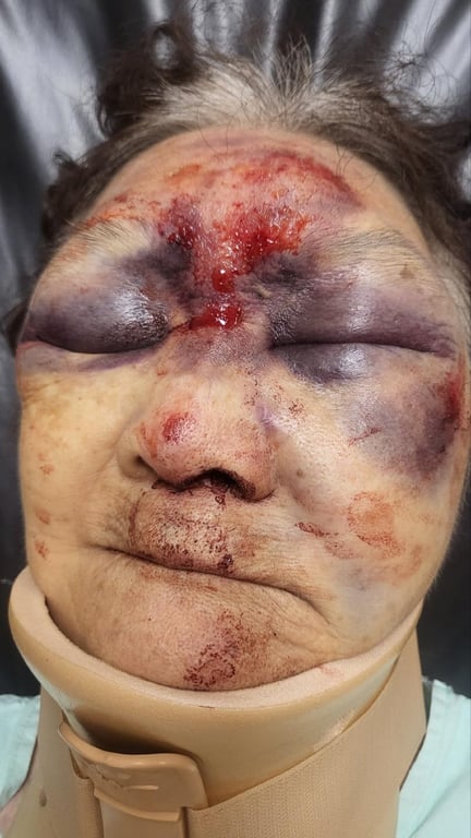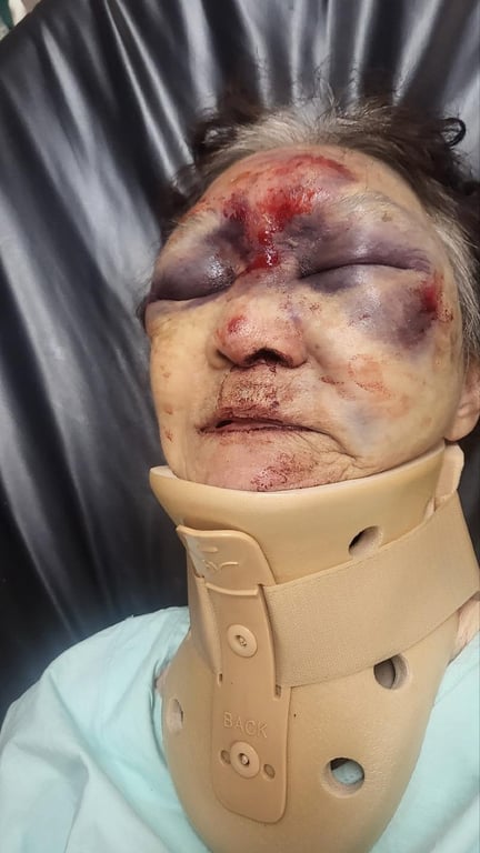할머니는 현재 안와 골절과 고관절 골절이시며 수술과 치료 중에 있지만 고관절 골절은 넘어져서 생긴 골절이라고해도 손과 안면의 여러 피멍과 상처들은 아무리 생각해도 넘어져서 생긴 상처가 아니라 폭행에 의해 생긴 상처라고 생각됩니다.