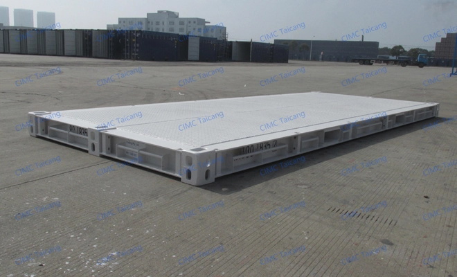 Containers with folding hinges, no roof and side panels, for extra-wide and extra-long cargo transportation. The flatracks container can be folded after unloading for easy transportation and storage of empty containers. The container structure can be customized according to the characteristics of cargo handling, transportation and storage.