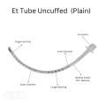Endotracheal Tube Uncuffed is a flexible tube used in endotracheal intubation, inserted through the mouth or nose into the trachea for airway management.