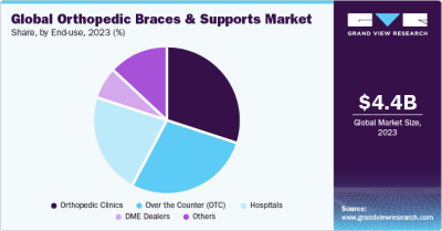 The OTC segment is anticipated to exhibit the fastest growth over the forecast period. The segment's growth is attributed to the easy availability of OTC-related orthopedic braces in retail pharmacies. Patients suffering from acute muscle pain often prefer OTC products, which aid in reducing recovery time and providing quick relief to injured joints and muscles. The market growth is anticipated to be propelled by the several initiatives undertaken by key companies operating in the market. For instance, in February 2021, Breg, Inc., a billing services provider and orthopedic bracing company, collaborated with distributor Club Warehouse based in Australia to expand high-value, premium orthopedic products in the Australian market.