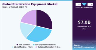 The global sterilization equipment market size was valued at USD 7.0 billion in 2022 and is projected to grow at a compound annual growth rate (CAGR) of 10.6% from 2023 to 2030. Hospital-acquired Infections (HAIs), also known as nosocomial infections, are primarily found in patients receiving long-term treatment, mainly surgical treatment. They can occur in surgical centers, clinics, hospitals, ambulatory surgical centers, and long-term care facilities, such as nursing homes & rehabilitation centers. Generally, the geriatric population, children, and patients with low immunity are prone to HAIs. Factors such as the use of catheters, lack of proper hygiene in healthcare settings, and excessive use of antibiotics can increase predisposition to HAIs.