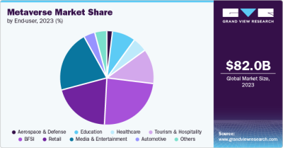 The global metaverse market size was estimated at USD 82.02 billion in 2023 and is projected to grow at a CAGR of 43.9% from 2024 to 2030. The integration of spatial technologies enables users to engage with digital content as if it exists in their physical surroundings, blurring the boundary between virtual and real-world experiences. Companies are increasingly adopting this technology to create immersive products and services that enhance user interactions and bridge the gap between the digital and physical realms, driving innovation in various industries. For instance, in January 2024, Unity Technologies, an American software company collaborated with Apple Inc. to support spatial experiences, including augmented reality (AR) and spatial computing. This collaboration aims to support the development of spatial experiences, particularly within the realm of AR and spatial computing. This collaboration seeks to empower developers to create interactive digital content that seamlessly integrates with the physical world, thereby enhancing user experiences and advancing the evolution of the metaverse.