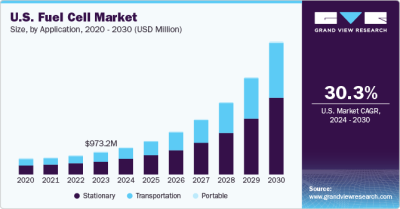 The global fuel cell market was valued at USD 7.35 billion in 2023 and is projected to grow at a compound annual growth rate (CAGR) of 27.1% from 2024 to 2030. This growth is driven by increasing demand for alternative energy sources, with public-private partnerships and environmental benefits playing a key role. Governments worldwide are expected to support this growth through R&D funding and financing programs. Additionally, building a strong regulatory framework will be crucial to creating an investment-friendly environment.