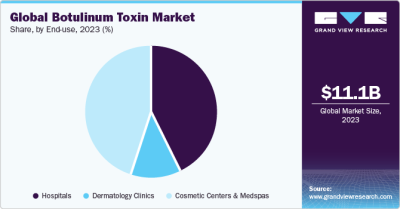 Minimally invasive procedures offer benefits including smaller incisions, reduced hospital stays, faster outpatient services, quicker healing, less pain, and fewer complications compared to invasive surgeries. Consequently, demand for botulinum toxin is projected to rise during the forecast period. Many dermatologists suggest that COVID-19 could serve as a catalyst for increased patient demand in the post-pandemic era. In a 2020 survey conducted by the American Society of Plastic Surgeons among 1,000 American women, 11% expressed greater interest in minimally invasive procedures after the pandemic than before. Botox and soft tissue fillers were among the most popular minimally invasive treatments in the U.S. during the pandemic.