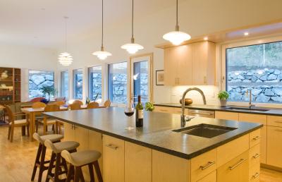 If you want to create a bright and welcoming atmosphere, maple cabinets paired with light-colored countertops and backsplashes can enhance the overall look and feel of the space. Even in larger kitchens, maple cabinets can contribute to a light and fresh aesthetic that keeps the space from feeling too heavy or dark.
