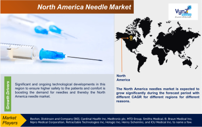 The growth of the North America needles market is driven by the availability of medical services, developing healthcare infrastructure of the region and providing facilities to enhance the accessibility. Also, there is a growing awareness of safer needles to avoid the infection caused by the needlestick injuries that has boosted the adoption of these needles to develop healthcare provider and patient safety.