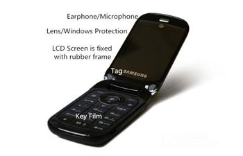 And applicable scheme of earphone, microphone, lens, windows protecion, LCD screen is fixed with rubber frame, tag, key film, LCD screen backlight lamp, double side adhesive, shock absorbing cushion material, insulation sheet, EMI shield material, etc.