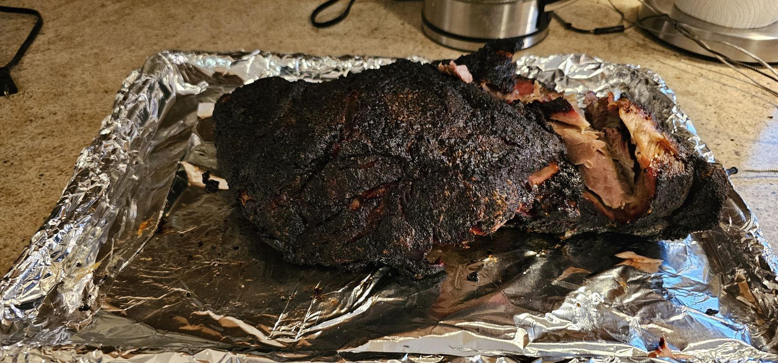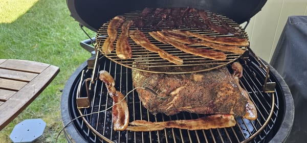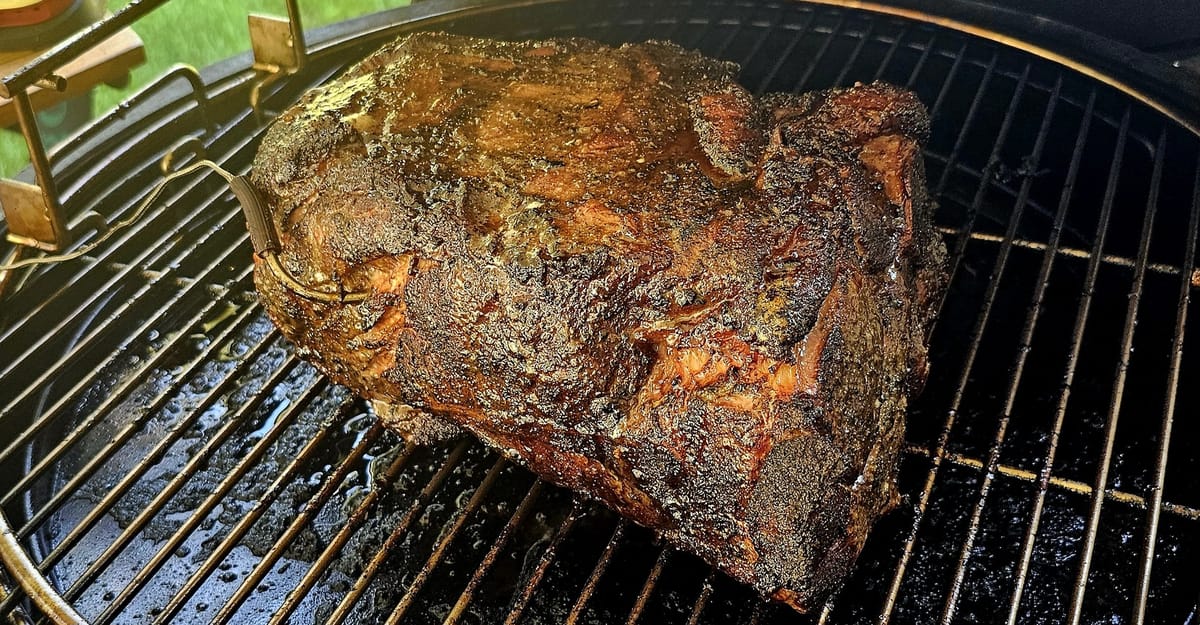 This chunk of pork has been showered in bacon grease for 4,5 hours